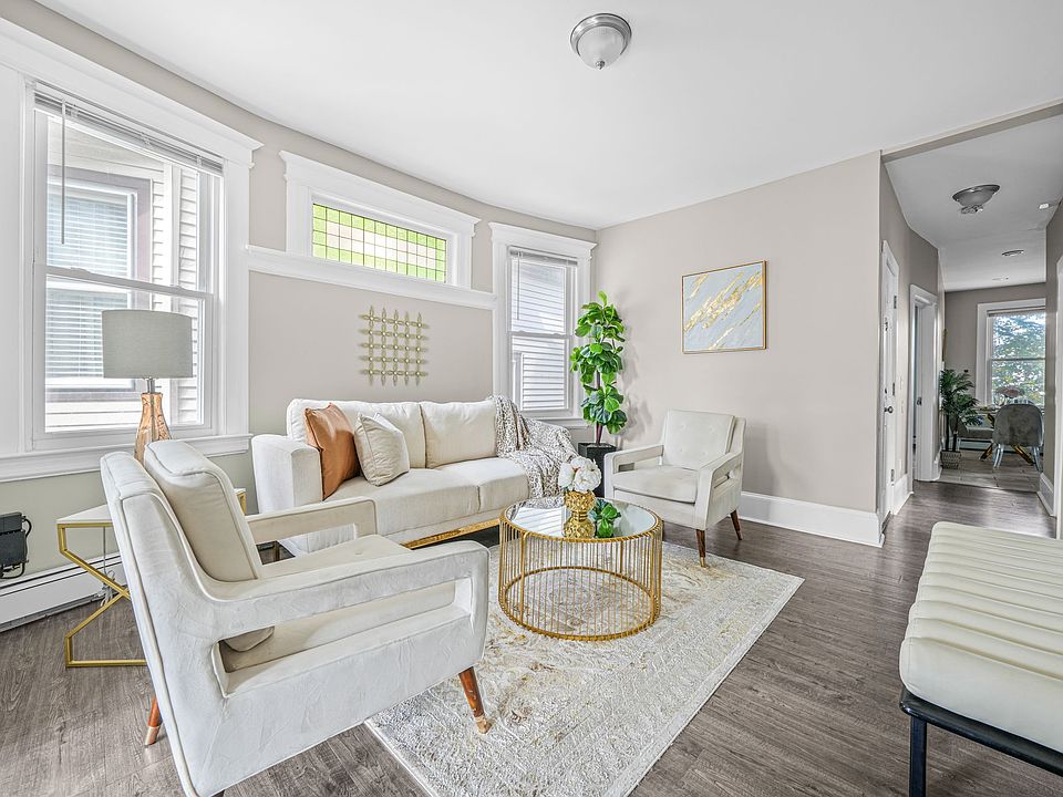 This bright and inviting 3 bedroom unit on the 2nd floor of a 3 family home is ready for new occupants. The updated unit offers 3 bedrooms, a full bath, a spacious living room and a nice eat in kitchen. The unit offers high ceilings, beautiful hardwood floors, a front staircase access and also a back staircase access. Laundry hook ups are available in the basement along with extra storage space and use of yard. Home is located just steps away from downtown shops and restaurants, major transportation, schools, parks and houses of worship. A small pet is ok. Broker fee equal to one months rent and 1.5 months security deposit is due at signing.