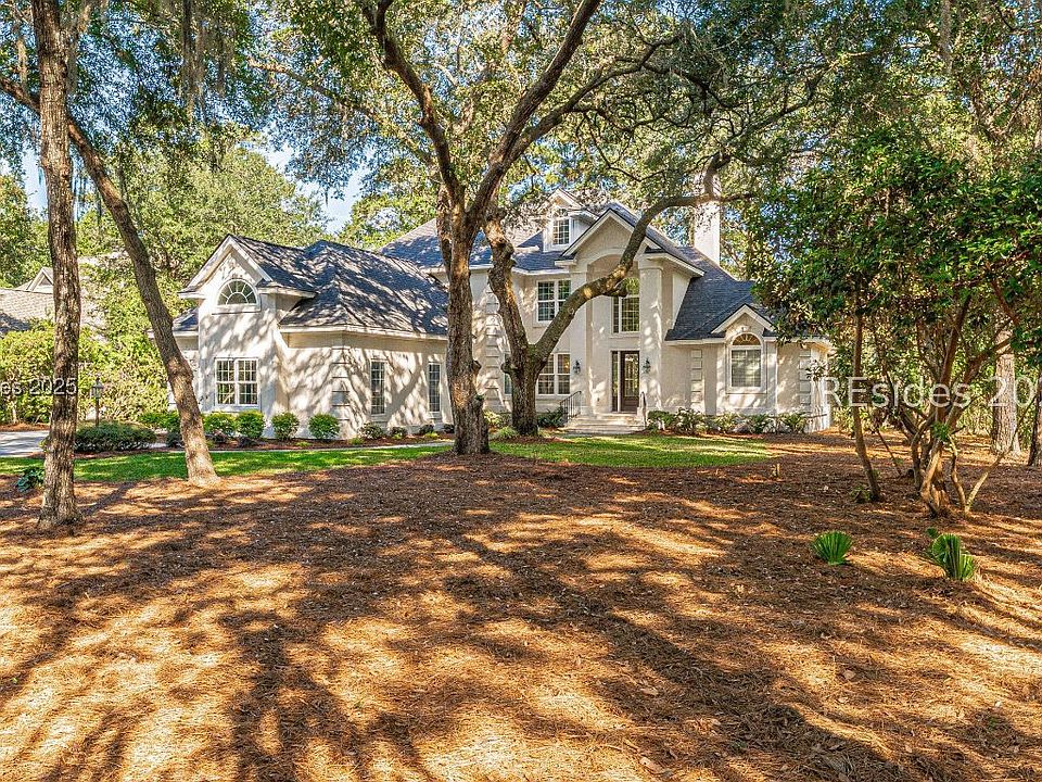 Sought-after opportunity in the private Golf Club neighborhood of Indigo Run - one of Hilton Head Island's most exclusive double-gated communities. This beautifully newly landscaped home blends elegance, functionality and Lowcountry charm. It offers two luxurious primary suites - one on the main level and one upstairs with a private screened porch plus two additional guest bedrooms and a versatile den/family/TV room, providing exceptional comfort and flexibility. Relax and take in serene views from the expansive back deck or the screened porch. The great room impresses with soaring cathedral ceilings, a cozy fireplace and a dramatic wall of glass framing tranquil lagoon and wooded views, creating a light-filled space that flows seamlessly with nature. Entertain in style with a built-in, full-service bar and a chef's kitchen featuring double ovens, a warming drawer and an island cooktop perfect for culinary enthusiasts and gatherings. Generously sized bedrooms ensure privacy and comfort. Additional highlights include a two-car garage plus golf cart bay and a large walk-up attic, ideal for easy access storage or finishing as a bonus room, media space or private retreat. Set on Pond Drive, renowned for larger lots, natural beauty and exceptional privacy, this home enjoys a premier location within The Golf Club at Indigo Run. It's move-in ready for refined coastal living. Don't miss this rare chance to own in one of Hilton Head's most prestigious communities. Golf Club membership offers access to two Jack Nicklaus designed courses, a Jr. Olympic pool, tennis, pickleball and some of the Island's finest dining. Seller providing 1 year home warranty to purchaser. New roof and landscaping August 2025.