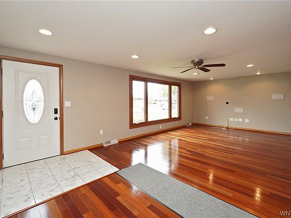 Beautifully remodeled 3 bedroom 1.5 bathroom ranch home situated a short walk to the Village of Williamsville This property features stunning Brazilian Cherry hardwood flooring, newly updated main bath(2021), the convenience of a tankless hot water tank(2019), newly installed Furnace & AC(2021) Enjoy the tranquility of your surroundings on the new concrete porch or entertain guests on the spacious 16 x 20 Trex deck The vinyl fence & railings(2019) ensure privacy in your outdoor retreat Windows throughout the house & the sliding glass door have been upgraded in 2018, providing natural light & energy efficiency This home boasts a fully finished basement with a dedicated office space & workout room, perfect for a home gym setup The main bedroom features an adjoining half bath The living room is enhanced w/ built in surround sound Also included is a two-story pole barn w/ electric that offers abundant storage & workspace potential Keep organized w/ a walk-in pantry & the garage includes additional attic space for storage With a doublewide concrete driveway drain tile & sump pump w/ dual backups(2020) & custom covers & canvas awning(2020) for outdoor areas No detail has been overlooked