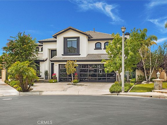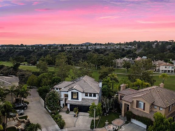 Welcome to one of the Premier Lots in all of Dove Canyon. This home has the most Breathtaking Views of the Canyon, Mountains and Golf Course that tell the story of why we live here. Designed around the Jack Nicklaus Signature Golf Course this home is located at the end of a long cul-de-sac with stunning curb appeal boasting fresh paint, manicured landscape, custom stone hardscape and new garage doors that make a bold and captivating statement. Upon entry thru the custom leaded glass double doors you are greeted with beautiful wood look tile floors, designer paint, crown molding, 2 story ceilings in the living and dining rooms with an abundance of windows that bring in the warmth of the sun all day. The kitchen is a chef’s dream. It has been remodeled with White Cabinets, Quartz Countertops, SS Appliances, Built-in Refrigerator + Wine Refrigerator, a Walk-in Pantry, Breakfast Bar and Nook. The kitchen opens to the spacious family room with a redesigned fireplace and a custom built-in entertainment center. There is a main floor bedroom with an ensuite bath, perfect for guests or your WFH office. There is also a separate powder room. Upstairs the primary bedroom has a Custom Teak Accent walls with high ceilings and windows the show off the view plus doors that open to large Balcony with a Circular Staircase. The balcony views will make you stop in your tracks as you are easily tempted to stay there all day. The primary bath has been Remodeled with Quartz Countertops, New Cabinets, a vanity that is a woman’s dream with a LED Mirror and both a salon and makeup drawer that holds everything and more. There are also 2 large secondary bedrooms each with their own en-suite bath. The home offers New Windows throughout, SOLAR plus a Backup Charger, EV Charging Station, Water Softener, newer Water Heater and A/C. The backyard is perfect for entertaining family and friends offering an expansive covered patio area + large turf area that is ample size for a pool or spa. The community of Dove Canyon offers residents a junior Olympic size pool, spa, tennis, pickleball, sport court, parks, walking, hiking and biking trails. No Mello-Roos and a low tax rate. Truly turnkey... This one won’t last!