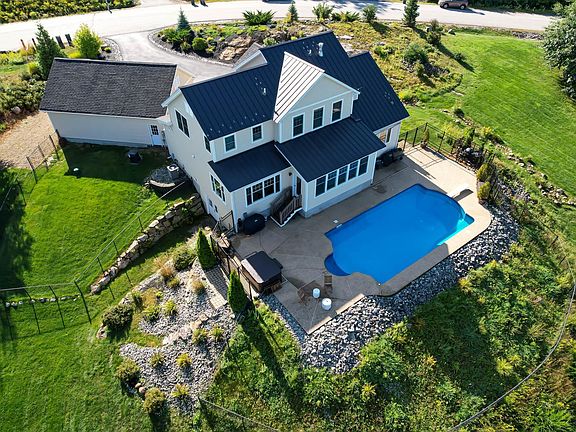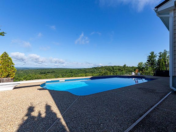 Absolutely Breathtaking, this awe-inspiring home will leave you speechless, with the quality of craftsmanship, open floor plan, natural light, rolling hills and the picture perfect 180 degree views of Kearsage, Pats Peak, Temple, Crotched, and Monadnock Mountains. This stunning home allows for one level living with the primary bedroom w/ ensuite on the first floor, 2 large upstairs bedrooms with walk in closets, and a shared sitting area/office space. Open concept kitchen, dining, and living, customs built ins, and travertine stone gas fire place perfect for entertaining and watching the seasons change with the captivating panoramic views. Bosch appliances, Marvin Integrity windows, whole house generator, energy efficient home with solar panels, new carpet, freshly painted interior, 10 zone irrigation, interior sprinkler system, fenced in dog yard, and a spacious field below. Relax as you float in the maintenance free, heated, salt water pool and become one with nature. Start your day surrounded by the raw, genuine beauty of those majestic mountains and end your day getting lost in those brilliant sunsets.