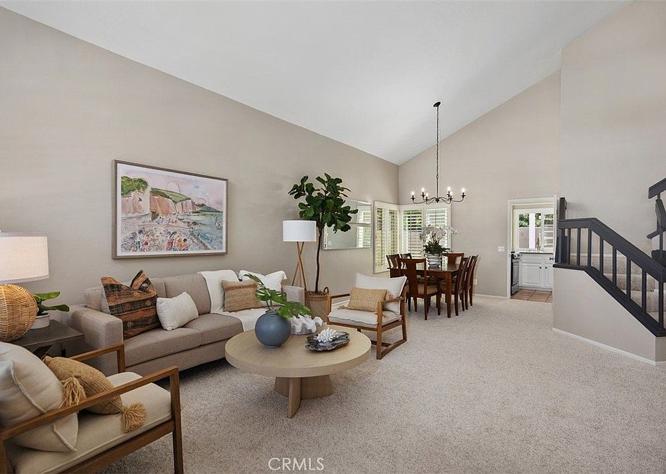Welcome to 29 Raposa, located in the heart of Rancho Santa Margarita, consistently ranked one of California’s safest cities! This beautifully updated 4-bedroom home offers the largest floor plan in the neighborhood with 1,977 sq ft of living space and RE-PIPED with Pex piping! Step inside to a light and bright living room with soaring ceilings that create an open and airy feel. The entire home has been freshly painted throughout with an updated color palette and features new carpet in the living/dining area, and primary bedroom, and newer luxury vinyl flooring in the entry, upstairs hall and bedrooms. The newly refreshed kitchen will impress with white cabinetry, brushed nickel hardware, brand-new stainless steel appliances and faucet, and a cozy eat-in nook with oversized windows to take in the views of the spacious backyard and the treetops of Oniel Park, which is just a stones throw away…and no neighbors behind! The family room features a sleek white brick fireplace and French doors that open to the backyard, which is shaded by a freshly painted patio cover, perfect for outdoor relaxing and entertaining. Downstairs also includes a beautifully updated powder room, a convenient indoor laundry room, and direct access to a 2-car garage with plenty of built-in storage. Upstairs, the primary suite offers a peaceful retreat with high ceilings, remodeled ensuite bath with huge walk-in shower, dual sink vanity, a second spacious closet area with mirrored doors, and flooded with natural light. Three additional bedrooms share an updated full bath with dual sinks, tub/shower combo, and new fixtures and faucets. Additional highlights throughout the home include plantation shutters throughout, dual-pane windows, new HVAC system (2 years), closet organizers in all bedrooms, ceiling fans in 3 bedrooms, and new fencing in backyard. Enjoy low HOA dues with full access to Rancho Santa Margarita’s incredible amenities: Beach Club Lagoon at RSM Lake with snack bar, volleyball, and water toy rentals, 4 Junior Olympic size pools,12 parks, new splash pad, pickleball & sport courts, trails around O’Neill Park which is just around the corner, summer movies in the park and live bands at the lake, walkable to shops, restaurants, and community events! Don’t miss this opportunity to own a home in the vibrant RSM Lake community!