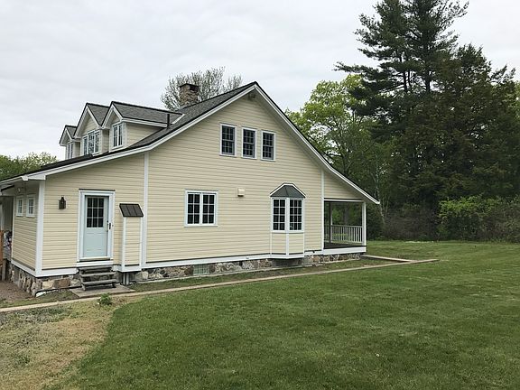 Extraordinary quality in every detail in this open, modern home rebuilt from the ground up in 2010....From the outside there is the appearance of a classic New England Farmhouse Cape, with wonderful covered mahogany and stone porches in a pretty country setting. Inside the detail and unique design reveal the care that went into the construction. There is a gourmet Kitchen with an office/study area, fieldstone fireplace with a woodstove, arched entry doors, a 1st floor en suite Bedroom, and a lower level that includes a home theatre, a wine tasting room, a 2nd Kitchen, and ample workshop space. The second floor is framed, insulated, and rough plumbed and wired for two additional Bedrooms and Full Baths, including a Master Bedroom Suite. The eye and skill of a real craftsman went into this home, and the mechanicals are the absolute top of the line. There is a 3+ bay Garage, and some site and concrete work has been completed for a guest cottage behind the Garage.....complete with THX certified home theather..... There is work to be done. awaiting your ideas...No Agents Please....!
