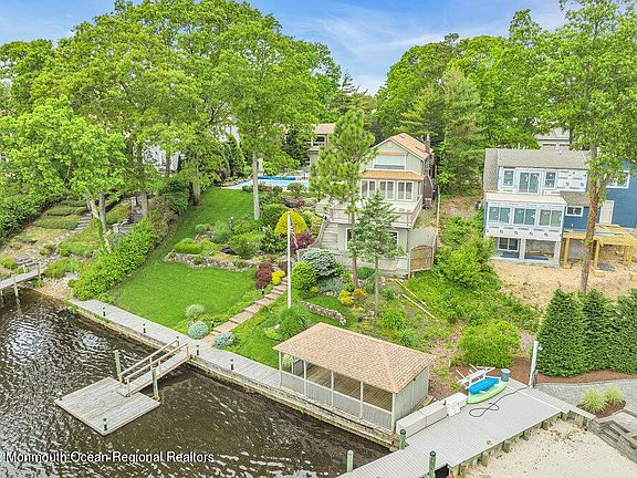 Once in a Lifetime Riverfront Opportunity! This Riverfront Estate (Not in a Flood Zone) sits on 0.45 Acres located on a quiet Cul-de-sac in Brick Twp & has breathtaking views of the Metedeconk River w/100 Ft of Bulkhead (Brand New Bulkhead being installed July 2022). Riparian Grant/Lease in Place already to extend dock out 37 Feet. Property is beautifully landscaped w/Multi-tiered Pond, Paver Walkways, Heated IG Pool, Built in Gas Grill, Sprinkler System on Well, & Hot Tub. House features 3 Beds, 3 Full Baths, Walkout Finished Basement, Multiple decks & Large Windows to capture views, Open Floorplan Layout, & Roof is only 4 years old. Detached 2 Car Garage w/Unfinished 2nd Floor that could easily be finished into additional living space. Don't miss out on your chance to see this Estate!