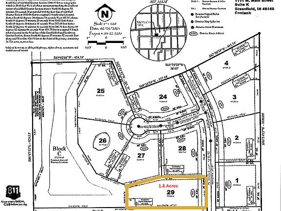 Welcome to Rockfield Estates, a new custom home community located between Greenfield Indiana and New Palestine Indiana within Southern Hancock Schools. This neighborhood provides direct access to the Pennsy Trail, a paved and maintained walking and biking trail that allows convenient outdoor recreation. Rockfield Estates offers 1.5 to 2 acre lots with options that include pond views and tree-lined settings. The community features natural gas, streetlights and sidewalks. Soil testing has been completed, and well and septic are required. Lot 29 includes 1.8 acres with a established landscape buffer and is located on the pond. Community guidelines allow fences and 2400 square foot pole barns. Minimum home size is 2400 square feet for a one story and 2600 square feet for a two story, with at least 1600 square feet required on the main level. Vinyl siding is not permitted. Approved builders are required. Joyner Homes is currently the approved builder for Rockfield Estates and can build custom plans or offer their available designs. Other builders may be considered with developer approval when submitted at the time of the lot offer. Additional lots are available and reservations may be made while inventory remains available.