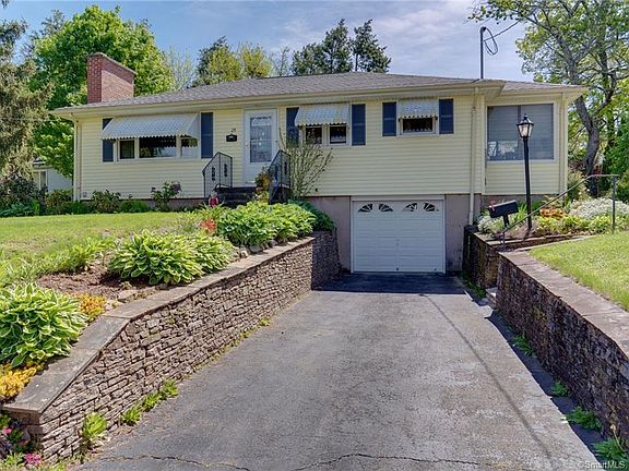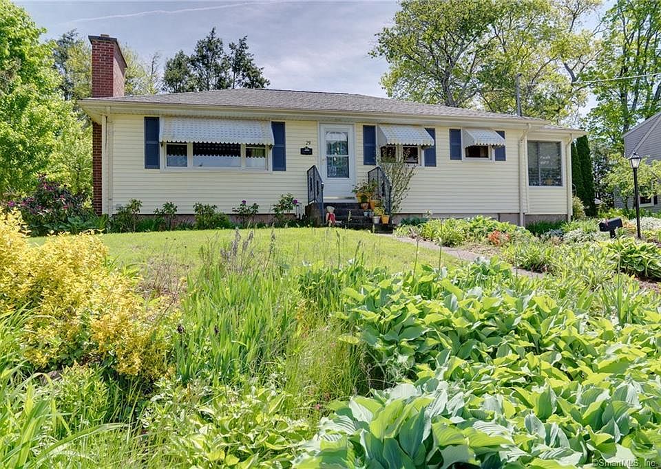 Step into this pristine, 1950's ranch and feel like you're home. Many original features include hardwood floors, arched doorways, cedar lined coat closet and walk-up stairs to attic. Beautiful natural sunlight fills this home.Spacious light filled eat in kitchen has solid wood cabinets abundant counter space double sink and broom closet. A convenient mudroom/sunroom area off kitchen is ideal for coming in and out of the rain. Master bedroom features "his" and "hers" double closets. Large living room is great for entertaining with its'wood-burning fireplace. large front window allows abundance of afternoon sunshine. Gardens surround this home with backyard potting shed to store tools and supplies. Lush backyard with lightly treed border is perfect for pets and summer parties. One car garage opens to basement for easy access. Basement has wood burning fireplace, plenty of storage and laundry area with utility sink. Quiet neighborhood, with easy access to I-84.Rt 72 & 9.
