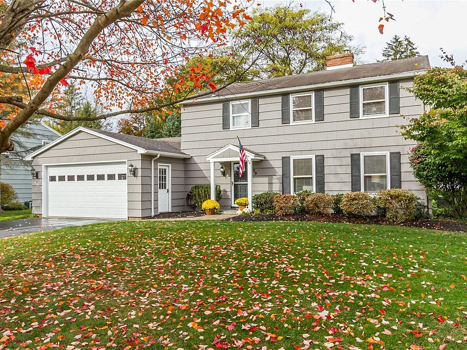 One of Pittsford’s most sought-after neighborhoods! Walk to Park Road School and Powder Mill Park from this beautifully updated 4-bedroom colonial offering an ideal floor plan for easy living and entertaining. Enjoy a spacious living room with a classic wood-burning fireplace or relax in the cozy family room featuring a gas fireplace. The open kitchen includes space for formal dining or casual meals and now features a charming hearth room perfect for quiet conversations while cooking. Freshly painted throughout in today’s colors, the kitchen also boasts all-new appliances and ceramic tile flooring. Upstairs, you’ll find four comfortable bedrooms, including a large primary with custom built-in closets. The mudroom/laundry area offers built-in benches and storage, leading directly to a generous garage with a rear storage section. The finished lower level—with new luxury vinyl flooring—adds flexible space for recreation, a home office, or your favorite hangout spot. Delayed negotiations until 10/30 at 3 PM. First Open House: Saturday, 11:30–1:00. Town sq ft is inaccurate sq ft was measured by appraiser to be 2069 with an extra 408 in lower-level.