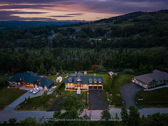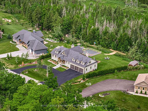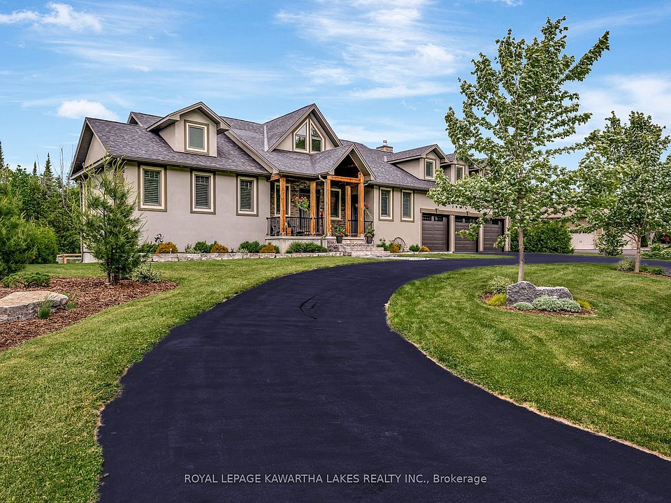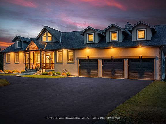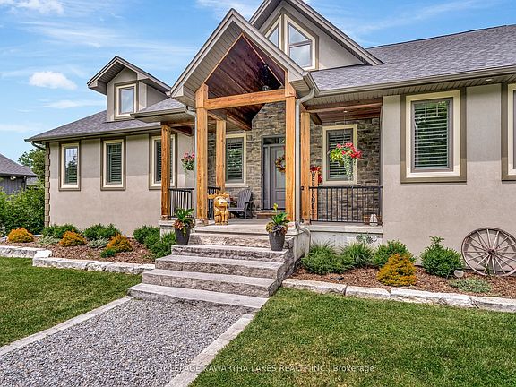 Remarkable Bungalow in Bethany Village tucked away on 1.7 acres in a cul-de-sac setting, bordered by greenspace and the hills of Manvers. This executive home has been designed to accommodate up to 3 separate family units within this incredible layout, or remain as one cohesive space, while simultaneously offering luxury finishes and a triple car garage with mechanical peace of mind for rural living all just 20 minutes from the 407. With floor to ceiling windows across the rear of the home, the natural light that drowns into the main living spaces is dreamy, and with mature trees to the rear of the lot, you'll never have to choose between outdoor views or privacy. Main floor also offers a fantastic primary suite with w/i closet, and oversized ensuite, as well as a second bedroom, 2 pc bath, and a cozy den off of the kitchen with wood burning fireplace, or pass through the den on your way to the rear deck. Upper loft has 2 bedrooms, kitchenette, full bath and a great living space that could be the main living area for this as a separate unit, or a versatile games room! Lower level has access from the main level, or separate walk up entrance. Home to a wicked media room- this is the place to make all your Friday night movie plans! With gas fireplace for added cozy factor, there are 2 full baths (one an ensuite) as well as 3 bdrms, an office and a home gym! (Not to mention the incredible storage space with added pantry/dry storage as well as a versatile storage room.) The 3 car garage is equipped with a bonus space behind, ideal for a hobby space, that won't detract from the floor space of the garage itself, as well as thermostatic heater with fresh air intake, and three door openers.With noteworthy curb appeal, the setting for this truly incredible home is a 1.7 acre lot, with trails throughout the wooded area at the back, a roundabout driveway in the front, sprinkler system, enclosed vegetable garden, and fantastic rear deck built for entertaining.
