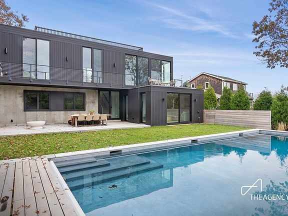 An expansive rooftop deck with ocean and a heated gunite pool with auto cover await you in this private, nearly 3000 sq. ft. new construction modern home. Step inside this designer 4 bed and 3.5 bath, which seamlessly intertwines indoor and outdoor living throughout. The entire home is flooded with natural light with floor-to-ceiling windows to make the space feel light and airy.Enter the modern and chic home into a family room that connects to the outdoors and the oversized gunite pool. The remainder of the floor includes three bedrooms, two bathrooms, and a laundry room. Upstairs, you enter into an airy, modern, open space with a chef's kitchen with plenty of storage and prep space along with Fisher & Paykel appliances. The kitchen, with an eat-in breakfast area and counter seating, opens to a large living and dining space with views and an outdoor lounge space. A powder room and primary bedroom with en-suite complete the floor. Step outside the second floor and head up to the expansive roof deck with 180 degree views out over the town of Montauk, Fort Pond and to the ocean. Perfect summer home to entertain or relax with plenty of outdoor space, including the gunite pool, the large deck with dining overlooking the pool area, the balcony off the second floor, or the expansive ocean-view roof deck. Welcome to your Montauk getaway.