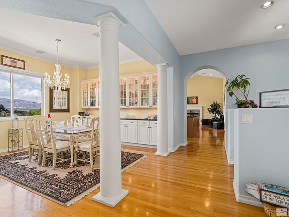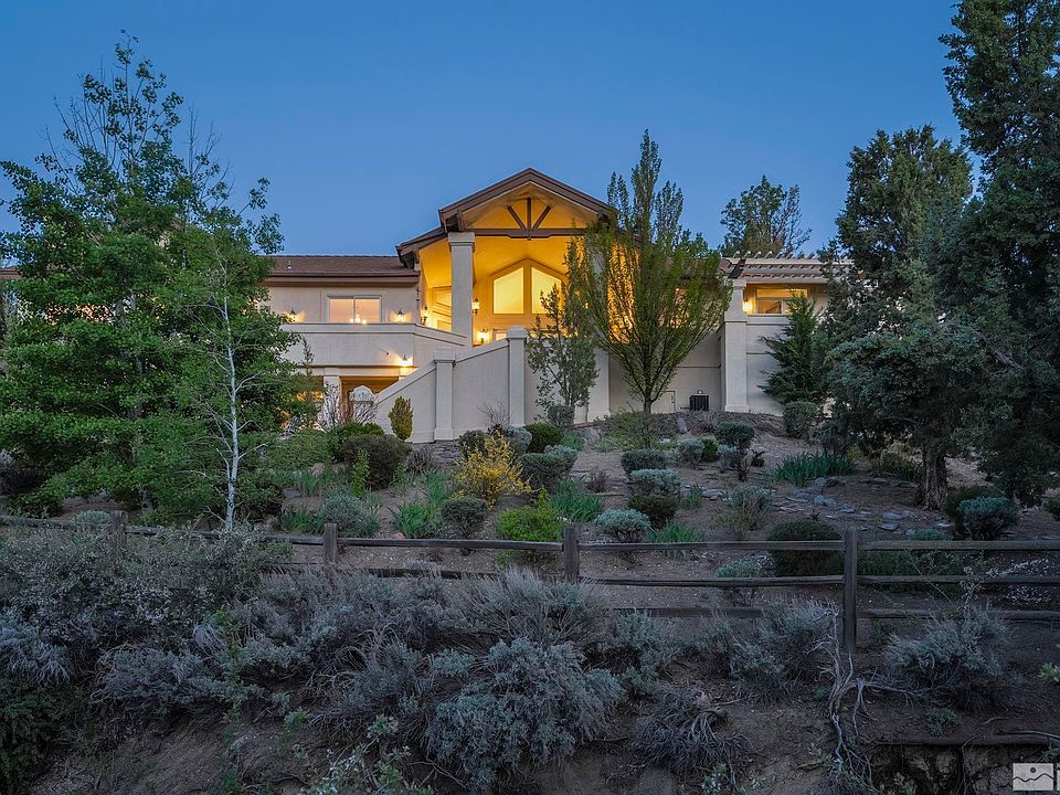 Welcome to this one of a kind exquisite CUSTOM estate home nestled on a secluded PRIVATE cul-de-sac in the highly sought-after Caughlin Ranch. Boasting panoramic, unobstructed MAJESTIC VIEWS of the Peavine mountains, the sprawling valley, and the dazzling city lights, this property offers an unparalleled visual experience. Indulge in the beauty of the outdoors from the comfort of the expansive covered deck, perfect for year-round relaxation and entertainment!, Every room in this remarkable home has been thoughtfully designed to showcase the breathtaking views, allowing you to immerse yourself in all the beauty Sierra basin has to offer! For nature enthusiasts, this home offers direct access to 21-miles of the renown Steamboat Ditch & gorgeous Caughlin ranch trails—go take those invigorating hikes, peaceful walks or cardio bike rides, all while reveling in the tranquility of the picturesque landscape along the flowing stream. Prepare to be captivated by the completely remodeled luxurious primary en suite bath—featuring an extraordinary spacious walk-in closet; a mountain view large freestanding Roman tub with handheld shower head; a double sized spa-like frameless shower with rainfall shower heads; all for your ultimate daily rejuvenating, refreshing & pampering experience. The crown molding, soaring ceilings & bullnose-cornered walls throughout add an elegant touch to every room, exuding sophistication and timeless beauty. From the oasis of a quiet courtyard to the chandelier-lit living room with cathedral ceiling; dining room with exquisite built-in & lit wall to wall buffet; great room with expansive granite countertop & spectacular Peavine view breakfast nook; a comfortable main floor primary en suite plus a second bedroom(currently used as an office)… this unique home is simply hard to resist!! The energy-efficient home also features two heating and cooling zones, 3 ceiling light fans on adjustable timer & dimmer, plus a carriage house style oak wood/steel-back new 3 car garage doors. The whole house built-in surround speakers provide an immersive audio experience, while the alarm system offers peace of mind, as well as a central vacuum system that enhances convenience and cleanliness. The walk-out basement is a true haven for guests or entertainment, featuring a large game room with wet bar and 2 large bedrooms, that open to an inviting backyard with mountain and brook view! There are ample surprising extra space(for a gym, hobby room or storage) in this lower level that provide endless possibilities. The beautifully landscaped low-maintenance yard , adorned with bountiful apple & pear trees, will no doubt be calling your name year-round to come out & appreciate all the beauty this perfectly located home has to offer!!