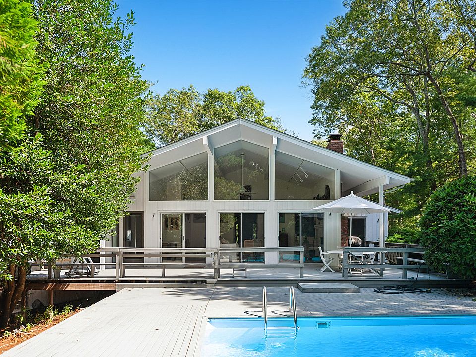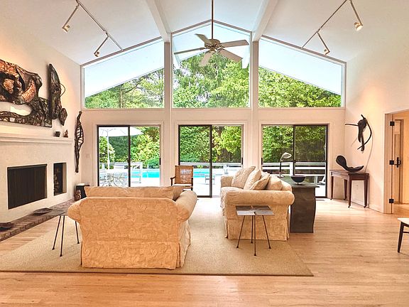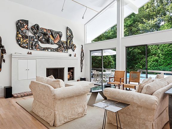 This exquisitely renovated home perfectly marries a timeless modern aesthetic with a serene tranquil atmosphere, creating a retreat that feels both stylish and restorative. Set on .60 acres of mature landscaped grounds, the property offers privacy, /sophistication, and an effortless indoor-outdoor flow designed for modern living. The main level features 1,900sf and the finished lower level with walk out access is 1,600sf. This lovely home is an art collectors dream house: the walls have 1/2" plywood installed behind the sheetrock for heavy art installations. Completely renovated in 2023, the single-level floor plan features three bedrooms and three-and-a-half beautifully renovated baths with real marble counters, ceilings and walls, and an enclosed toilet, all thoughtfully designed with clean lines and calming tones with an extra large jacuzzi for two. The heart of the home is the sun-drenched living room with dramatic vaulted ceilings, a wood-burning fireplace and floor-to-ceiling windows, inviting natural light to pour in throughout the day and framing tranquil garden and pool views. The main level Primary bedroom offers views of the back yard and pool area, with it's own door to the deck and pool, plus features a walk in closet. Also featured is an additional ensuite guest room, plus a third. There is also a laundry room on the main level. The walkthrough kitchen is both sleek and functional, boasting high-end appliances, and refined finishes that make cooking and entertaining a delight. There is a walk in pantry for extra storage. Each bathroom has been completely renovated with spa-like details, blending understated luxury with modern practicality. There is a large attic with high ceilings and a pull down ladder that offers plenty of storage. The finished lower level boasts an unexpected and versatile bonus: a spacious walk out art studio and additional full bathroom, ideal for creative pursuits or a private wellness space. Included is an attached 300sf one car garage. Step outside and discover a 20x40 heated pool surrounded by mature plantings and large deck. This outdoor sanctuary provides the perfect setting for both quiet relaxation and lively entertaining. Whether lounging by the pool, dining al fresco, or simply enjoying the natural beauty, the outdoor experience is an extension of the home's calming design. With its abundance of natural light, harmonious flow, and seamless balance of mid-century character and modern updates, this residence is more than a home-it's a lifestyle.