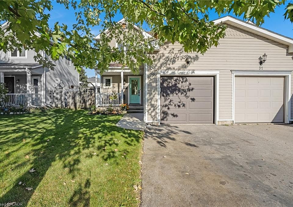 Welcome to 29 Schroeder Drive - a charming and well-maintained 2-storey semi-detached home in a desirable neighborhood. This lovely home offers 3 bedrooms, 1.5 bathrooms, and a spacious rec room - perfect for additional living space or a home office. The main floor features a cozy living room with a gas fireplace, a bright kitchen with included appliances, and a convenient powder room. Upstairs, the primary bedroom boasts a walk-in closet and a beautiful 4-piece bath serves the upper level. Enjoy peace of mind with a new furnace and A/C (2025). Step outside to an awesome backyard retreat with a patio, shed, and gazebo – ideal for relaxing or entertaining. Located close to scenic trails, the Grand River, parks, schools, and many amenities. Don’t miss out on this fantastic opportunity to own a beautiful home in a great community!