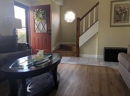 Easy and carefree living at popular Scotty Hollow complex! Light, and airy end unit townhouse with extensive update, new HVAC, hardwood floor, kitchen (all BOSCH equipment's), bathrooms and freshly painted. Bright and open floor plan flows from living room to dining area with access to balcony, and kitchen. In unit laundry off the half bath. Upstairs. Are two spacious bedrooms, one with terrific loft space and extra storage. Both bedrooms access the full bath. Mudroom area with practical storage at entry level. Wonderful community and amenities including swimming pool, clubhouse, walking and running trails, tennis court. Perfect location with easy access to highways, schools and athletic fields. Two car deeded parking. No pets. Please note due to Covid-19 restrictions pool is closed. Tenant to pay 1/2 month rent to tenant's agent.