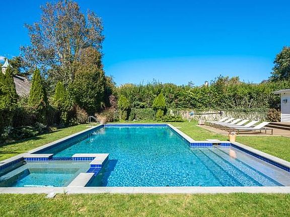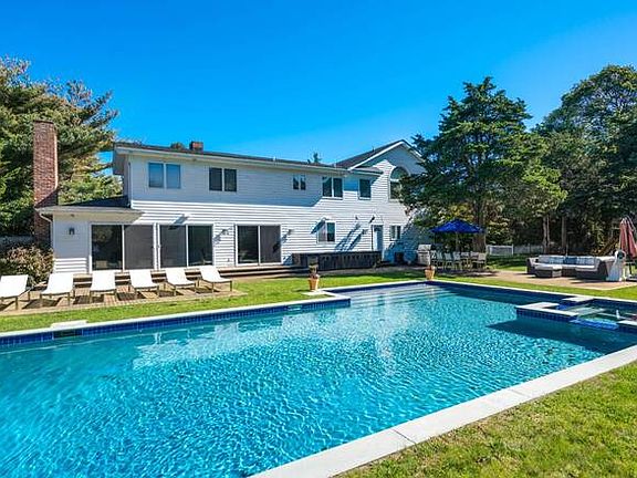 This spacious, 5-bedroom home has been recently updated and offers multiple living areas with fireplaces, a brand new kitchen with Viking appliances, pantry/laundry room, guest suite, bedroom and full bath on the first floor. The second floor master suite with separate tub and walk-in closet is joined by two spacious guest bedrooms with jack and jill baths. A summer oasis with an oversized gunite heated pool and outdoor shower, or perfect year round home. Complete with an attached 2-car garage, full basement, central air conditioning and updates throughout. Just down the street from the bay and Westhampton Yacht Squadron, you don't want to miss this one.