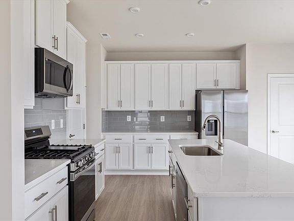 Spacious islandQuartz countertopsElectric vehicle charging stationStylish tile backsplashPlush carpeting upstairsStainless steel appliances