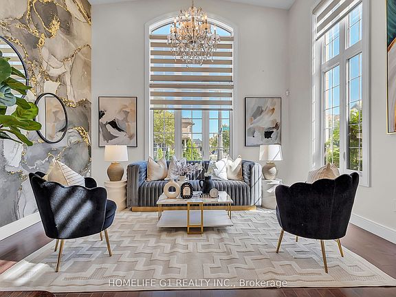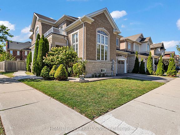 This fully upgraded home has 4500 sq. ft. of total living space on a premium corner lot with a backyard stretching 58 feet wide. This home welcomes you with a grand foyer and soaring 15-ft ceilings in the living room, framed by oversized bay windows that fill the space with natural light. The main floor showcases 24x24 marble flooring, custom metal picket railings, and over 100 pot lights across the main and second levels. A formal accent wall dining room with double door entry provides an elegant setting for entertaining, while the gourmet kitchen features three-inch granite countertops, built-in appliances, upper cabinet lighting, and spacious breakfast area. The kitchen flows into the family room, where another accent wall and fireplace create the perfect space for gatherings. Completing the main level are electric-powered blinds throughout and a full 3-piece bathroom with a stand-up shower. Upstairs, hardwood flooring runs throughout, with four generous bedrooms including a primary retreat with a 5-piece ensuite, a junior suite with its own ensuite, and two bedrooms sharing a jack-and-jill. The fully finished basement adds over 1,200 sq. ft comprised of three bedrooms, a 3-piece ensuite, abundant storage, and 60 additional pot lights. Exterior upgrades include a light brick and stone façade, exterior pot lights, and double side entries, completing this rare offering in one of Oakville's most desirable neighborhoods.