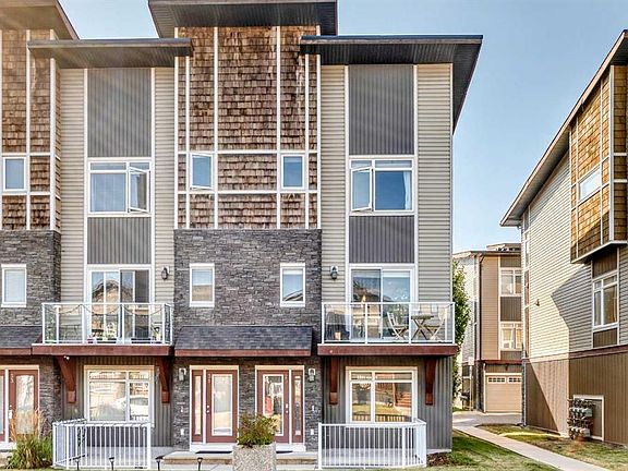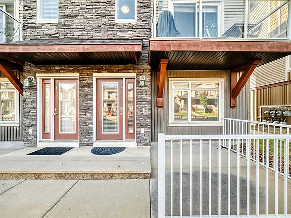MODERN END UNIT | 2012 BUILD | 3 PARKING NEAR BY OPTIONS | DOUBLE GARAGE | GREAT LOCATION | FLEX ROOM + DEN | FULLY FINISHED. This move-in ready townhouse in Skyview Ranch combines modern design, functional space, and one of NE Calgary’s most convenient locations—all at outstanding value. Built in 2012 and well maintained, it’s bright and welcoming with windows on 3 sides and no front/back neighbours. The entry level offers a double attached garage (brand-new door), storage, and a versatile flex room—ideal as a gym, office, hobby space, or bedroom—plus a private front patio. The main floor impresses with a spacious great room, dining area, half bath, and a chef’s kitchen featuring quartz counters, large island, upgraded cabinets, stainless steel appliances, OTR microwave & under-mount sink. Step onto the east-facing deck for BBQs or summer evenings. Upstairs boasts 2 bedrooms including a primary with ensuite, another full bath, an office/den and a brand new set of washer/dryer. Walk to schools, parks, pond & playgrounds, with fast access to Stoney, Deerfoot, Airport & CrossIron. A stylish newer home in a prime location—an exceptional opportunity you don’t want to miss.