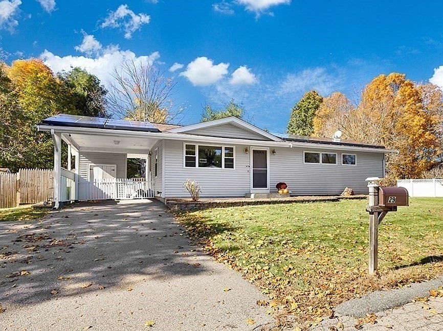 Discover the perfect blend of comfort & convenience in this updated 3-bedroom, 1-bath ranch. All the big-ticket items are done—including siding, windows, exterior doors and roof! Inside, enjoy true single-level living in an inviting open concept living room, highlighted by beautiful hardwood floors that flow throughout. This main living area opens to a refreshed kitchen featuring new countertops, painted cabinets & casual dining area. The home's 3 bedrooms all feature spacious closets and the full bathroom has been renovated w/modern finishes.The lower level extends your living space w/partially finished basement, complete w/ heated storage space & a separate heating zone for year-round comfort.The exterior is an entertainer's dream, boasting a fully fenced in yard, new above-ground pool w/deck surround, fire pit area, carport & multiple sheds for abundant storage. This home is the complete package—just move in and enjoy! New Septic installed in 2001.