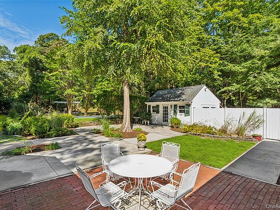 The rear yard presents a park-like setting, boasting mature landscaping and an oversized patio, ideal for enjoying the natural beauty of the surroundings. This move-in-ready home is a rare find, offering both tranquility and convenience in one of Hampton Bays' most desirable locations.