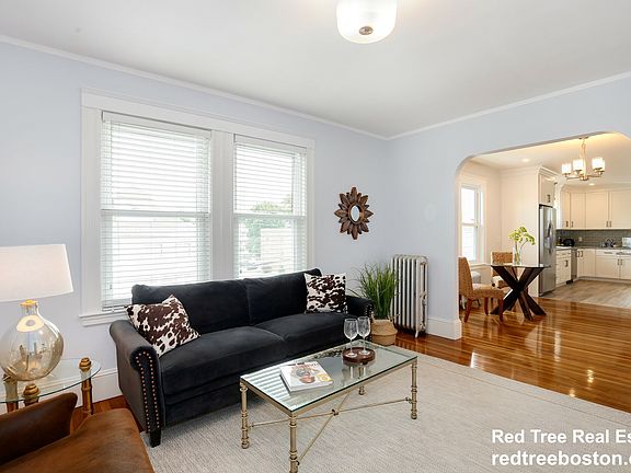 Bright and airy 2-bedroom in excellent location on the Somerville/Medford line. Walking distance to Magoun Square, Ball Square, Powder House Square and the new MBTA Green Line extension. Located on a gorgeous tree-lined street, this apartment features a recently renovated kitchen with large dining room that opens directly through to the living room. Also included are front and rear porches, hardwood floors throughout, private off-street parking, and a continuous, on-demand hot water system. Extra closet/space above stairs can be used for walk-in closet.