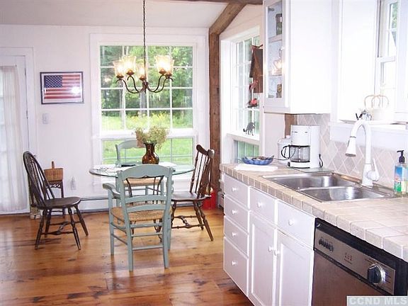 Light and bright 1800's gem.French doors open to 2 dining areas, great kitchen,living room with fireplace, laundry room and bath on first floor.3 bedrooms and 2 more baths ,enclosed porch, 2 story barn with apartment started, bath in, plumbed for kitchen, @ additional barns and 2 run in sheds. Roof will need to be replaced as well as all of the baseboard heat piping due to a freeze-up.