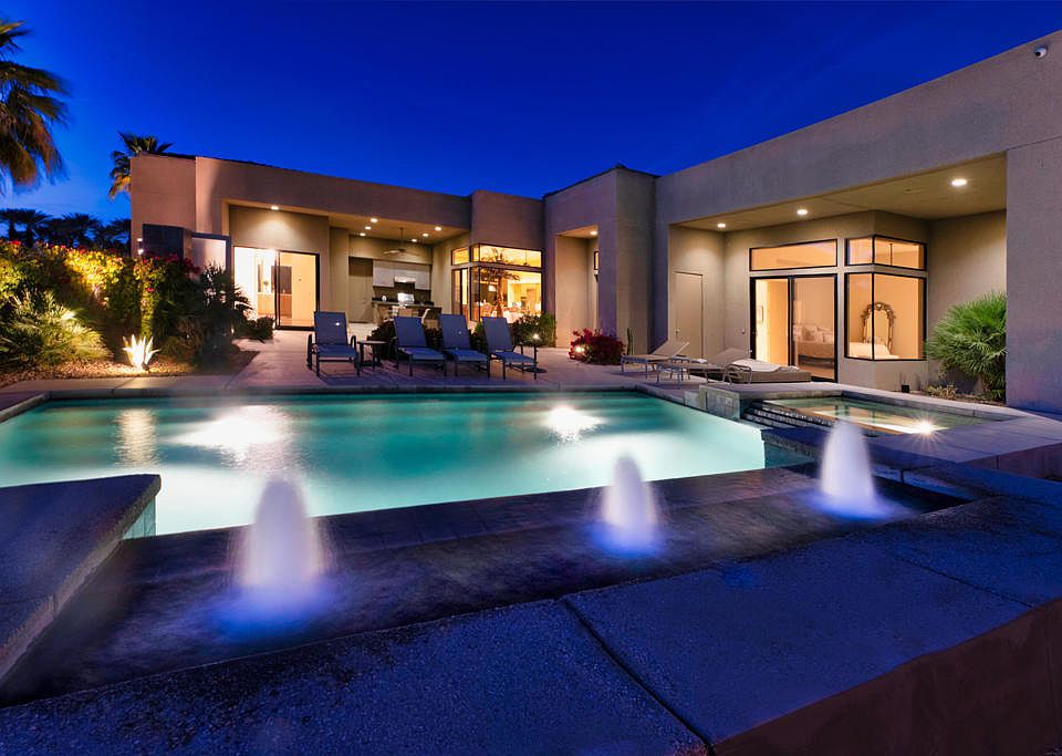 Custom contemporary built w/ walls of glass to create 360 degree mountain views spanning from Mt. San Jacinto to the West, Santa Rosa's from the South. chocolate mountains from the NE bringing the outdoors inside to create the ultimate indoor/outdoor living so treasured in the Palm Springs Valley. Located in secure guard gated luxury community of Tamarisk Ridge amongst the luxury gated communities of Tamarisk and next to the famous Annenberg estate. Open spacious floor plan with great room, adjoining elegant living room and wet bar w/seating plus dramatic dining room. Large chef's kitchen with top of the line Thermador appliances, large island, breakfast counter bar plus large breakfast nook area that opens to the N. patio. The master suite spans the South wing w/ luxurious master bath like a personal spa with soaking tub, large shower, dual sinks, dual water closets, 2 extra large walk in closets, plus office, gym or toddler room adjoining the entire South wing of the home. 2 large ensuite interior guest rooms on the North wing, all with outdoor patios's w/ privacy. A separate large casita on the West courtyard is a luxurious private retreat for your guests. Travertine tile flooring, design and detail throughout. 3 car garage w/ epoxy floor and separate golf cart area. Tankless water heater and more! This is truly a resort destination retreat home with breathtaking views. An entertaining private retreat in an exclusive luxury home community close to everything!
