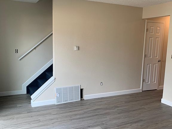 MOVE-IN SPECIAL. REMAINDER OF AUGUST AT NO COST. This apartment has been completely remodeled from top to bottom. Windows to flooring, toilets to cabinets. This end units has BRAND NEW- LVP flooring, lights, ceiling fans, appliance, counters, kitchen cabinets, window coverings, bathtub, toilets, vanities, mirrors, ceramic tile, faucets, doors and knobs, carpeted stairs, lights, outlets and switches, trim and base. The apartments flows very nicely with a large combined kitchen dining rooms that transitions into the spacious rectangular living room that can accommodate lots of furniture. There is a 1/2 bath on the main floor with a coat closet and storage room. The staircase to the 2nd floor rolls out of the living room to the two bedrooms and a full bath. The primary bedroom faces west facing views with a large closet. The second bedroom faces east with a good sized closet and both have lots of natural light. The bathroom is very spacious with a full single vanity and large mirror and the tub walls have modern tile finish. There is a washer and dryer upstairs for easy laundry days. There is a front porch and a nice sized fenced in back patio area that can be used to BBQ and outdoor dining. The complex has had a complete facelift as well. Freshly painted, new windows, roof and gutters. On the immediate horizon is new fencing and driveway upgrade. MOVE IN SPECIAL-Remainder of August Rent Free. Tenant pays all utilities, Small animals ok, must have excellent past rental history, no past evictions, No smoking of any kind in the apt