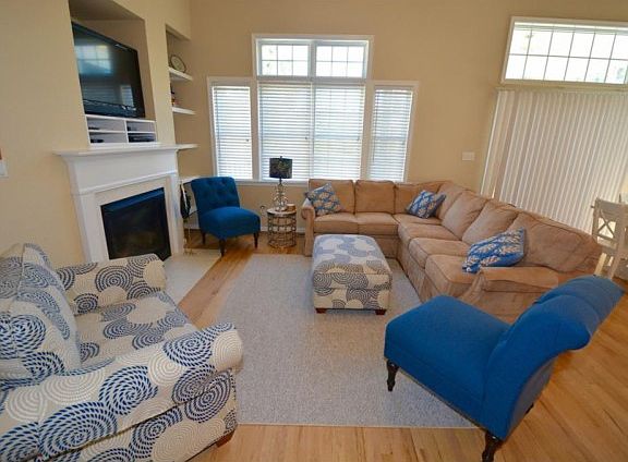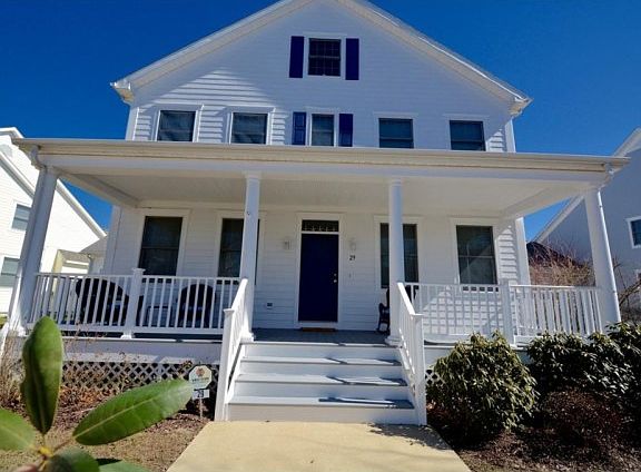 This beautifully furnished, turnkey, 5 bedroom home with two car garage on a quiet street is meant to be enjoyed both inside and out. A large, inviting front porch beckons you to sit with a cold drink and relax. Inside the home, the first floor great room ensures that everyone can be together with a large dining space and comfortable seating. Step right outside to a large screened-in deck that opens to a second, open air rear deck for expansive summer entertaining and water views. The kitchen with huge pantry opens to the great room. Enjoy the maple hardwood floors throughout the first level, a generous master en suite with tub, separate shower and double vanity as well as a second bedroom. The second floor has a large king bedroom, a queen bedroom and a bunk bed room. Recently painted inside and out. Walk to pools, tennis and community center. Beach shuttle is around the corner. Take advantage of this great property this summer for family or for an investment opportunity.
