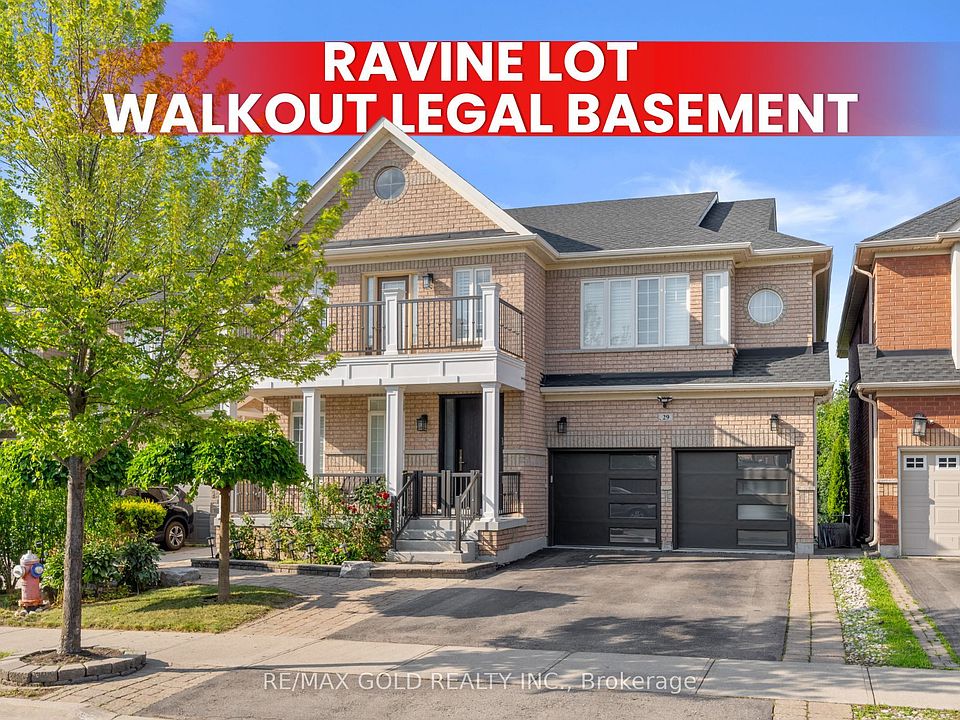 Legal 3-Bedroom Walkout Basement on Ravine Lot! This stunning 4-bedroom detached home sits on a premium 45 x 113 ft ravine lot and features a fully legal 3-bedroom walkout basement with 2 full washrooms ideal for rental income or extended family. Enjoy 9 ft smooth ceilings on the main floor with an open-to-above family room boasting 18 ft ceilings and a cozy fireplace. The home features hardwood throughout, brand new tiles on the main floor, pot lights, a kitchen with direct access to a 16x16 ft deck, and a second-floor balcony overlooking the ravine. Upstairs offers 3 full bathrooms, providing ultimate convenience and comfort for large families. Additional highlights include a sound system, zebra blinds, California shutters in bedrooms, a shed in the backyard, and brand new custom front and garage doors. Located near all major amenities including schools, parks, shopping, restaurants, public transit, and highways, this is a rare opportunity to own a move-in ready home with luxury finishes and income potential.