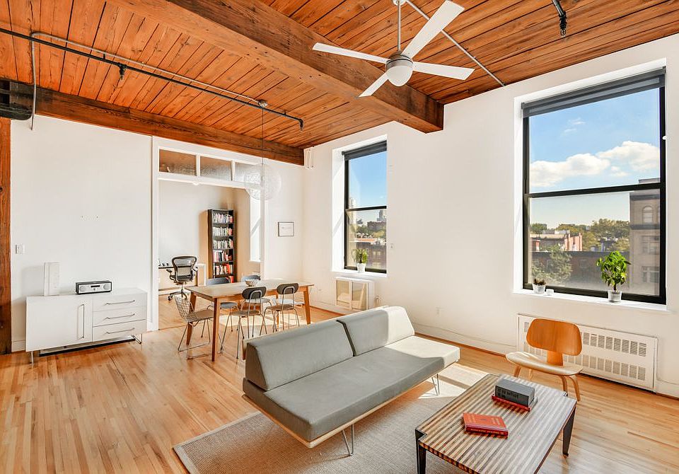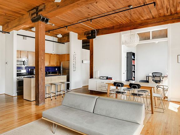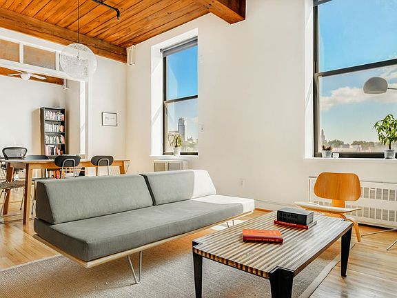 Stunning Soho-style converted factory loft with 3 large bedrooms, 1.5 bathrooms, and pristine architectural elements. Located on a quiet, charming block lined with cobblestones, this corner loft apartment features a dramatic open floor plan with 11 foot ceilings and 6 oversized windows that flood the apartment with light all day, amplifying the feeling of openness and space. Gaze out onto the Manhattan skyline or the rooftops of brownstone Brooklyn from this unique space. Original architectural elements that showcase the apartment's industrial past include original paneled ceilings and beams, exposed brick and pipes. All layer seamlessly with the modern and stylish open kitchen with plenty of counterspace and cabinets and recently renovated bathrooms with gleaming white subway tile, Kohler cast iron tub, Toto toilets, Duravit sinks, and Waterworks hardware. A private washer/dryer and 6 enormous closets adds to the convenience of this exceptional space. 29 Tiffany offers a live-in super, porter, part-time doorman, bike room, gym, play/meeting room, laundry room, common garden and roof deck with spectacular views. Free shuttle bus to Borough Hall for morning and evening commuters and a stroll to the waterfront for great restaurants, bars and of course Brooklyn Bridge Park complete with the NYC Ferry service to Wall Street. Please note there is an assessment of $304.37 in place until 2020.