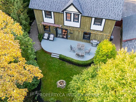 Custom-style home (not a designated heritage property) offering exceptional beauty and outstanding build quality. Enjoy a beautifully landscaped yard with a private seating area beside the creek, an ideal place to relax and listen to the sound of running water. The large covered front porch invites conversation with friendly neighbours and adds to the home's welcoming charm. This location provides an exceptional quality of life: walk to cafés, schools, tennis courts, parks, restaurants, massage and wellness services, an art gallery, extensive shops, museums, and a beautiful library.Commuting is effortless with the GO Station only a short walk away, offering convenient access to Toronto and Union Station. Aurora Town Square, just a five-minute walk, features a skating loop, indoor and outdoor performances, and year-round festivals. Aurora Town Park, seven minutes on foot, hosts live music, community events, and a vibrant weekly farmers' market for half the year. Slabtown Armoury at the park offers a great patio for food and drinks. Two ensuite washrooms upstairs with heated floors. Main floor washroom with a walk-in shower.