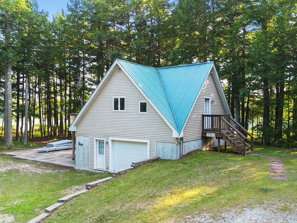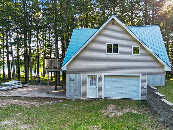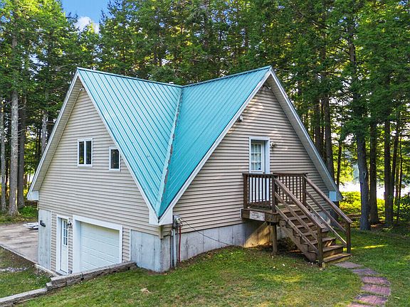 Private 600 +*- feet on Saturday Pond with this year round home! This cozy one room open concept house has water views from the living room., a full kitchen and bath, with a full insulated daylight basement for storage.. Private well and septic with 2 tanks. Privacy with space to enjoy the outdoors. Pad on the property for future expansion of the home. New dock included.