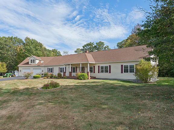 This beautifully designed sprawling ranch offers a functional and inviting layout. The primary suite is privately situated at one end of the home, featuring dual sinks and separate his-and-her closets for comfort and convenience. At the heart of the home, the kitchen, dining, living room, and a versatile bonus room create an open flow, perfect for both everyday living and entertaining. The opposite end of the house provides three additional bedrooms and a dedicated office, offering plenty of space for family or guests. From the garage, step into a practical mudroom that connects to a separate laundry room and provides basement access. The garage is thoughtfully equipped with a sink offering both hot and cold water and entry to the basement. Outdoors, enjoy summer days in the above-ground pool and take advantage of two sizable storage sheds for added utility. Just 15 minutes to I-95 and 20 min to Portland. Furnishings optional/negotiable.