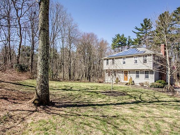 MOTIVATED SELLERS PRICE REDUCED. Are you looking for room to roam? Charming country setting with 4 BEDROOM 1.5 BATH COLONIAL NESTLED on a 2.73 ACRE LOT. First floor features FIREPLACED LIVING ROOM, DINING ROOM, FAMILY ROOM AND 1/2 BATH WITH LAUNDRY, and KITCHEN with sliders to an over sized rear deck perfect for entertaining! Upstairs features 4 generous sized bedrooms the master has a walk in closet. Lower level has plenty of storage space and large bar area. Lots of parking that can accommodate at least 8 cars, there is a shed at the top of the driveway as well. NEW 2 YEAR OLD SOLAR PANELS FOR LOW OR NO ELECTRIC BILLS AND YOU ALSO GET SREC BONUSES.. This home also has a security system. Plenty of room to ride dirt bikes and ATV's. Lot's of land to walk and discover the best that nature has to offer. Huge fire pit to enjoy with friends and family as well. SEPTIC DESIGN IN PROGRESS. TO BE INSTALLED BEFORE CLOSING.