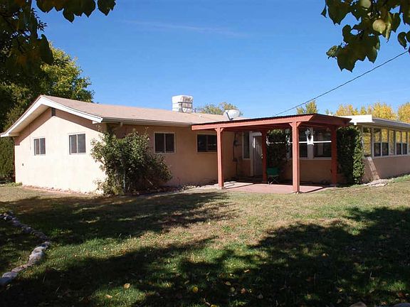 New Price Reduction. Newly renovated 3 bedroom, 2 bath home with spacious sun room or family room in a most desirable, established neighborhood! New carpeting in all bedrooms-lovely new soft pale paint colors throughout! Open Concept kitchen and living room with beautiful wood floors, marble tile floor at front door entry, remodeled cook's kitchen with quartz counter tops, well appointed breakfast bar, stainless appliances and generous recessed lighting. Beautiful multiple pendant lights and sconce lighting adorn. Dining room and an office/sitting area off the living room area for family get- together's. Convenient side entry with mud room, laundry room and garage. Nice exterior stucco. Lush outdoor front and back yard areas with Portal and mature landscaping of pine trees, fruit trees, newly planted grass and patio areas. Irrigation rights and private well on a .50 acre fenced corner lot! Convenient commute to Los Alamos and Santa Fe. Don't miss this!