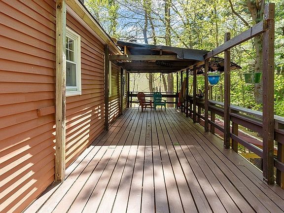 Welcome to this well-maintained 3-bed, 1-bath Cape, ideal for first-time buyers, downsizers, or anyone seeking flexible one-level living. W/ 1st floor bedroom, this layout is perfect for those who prefer or need single-floor convenience, while still offering space to grow. Recent big ticket updates include brand-new roof, furnace (2019), and perimeter drainage installed in 2020 to ensure a dry, worry-free basement. Enjoy your own private, wooded backyard oasis, featuring a gigantic partially covered deck, sitting area, and fire pit—perfect for entertaining or relaxing in a peaceful natural setting. Additional highlights include town water/town sewer, available parking both sides of the home, and covered parking under the deck. Large unfinished basement provides excellent storage and work out space. Laundry is currently located in the basement but could easily be moved to the first floor for added flexibility.