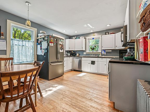 This six-room, three-bedroom home is situated on a corner lot with a detached one-car garage in a residential neighborhood. The first floor features an attractive eat-in kitchen equipped with modern appliances, a formal dining area, and a spacious living room that includes dedicated office space. There is also a first-floor bedroom, bathroom, and a laundry area. On the second floor, there are two additional bedrooms and a full bath. The home benefits from heating and cooling provided by mini splits, as well as a hot water boiler located in the basement. Adjacent to the living room is a shop area with ample storage. The property is conveniently located within close proximity to Gorham Common, Libby Pool, downtown Gorham, and offers easy access to the numerous recreational activities available in the White Mountains region.