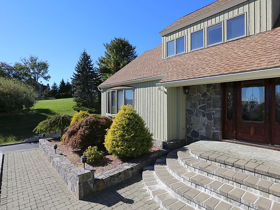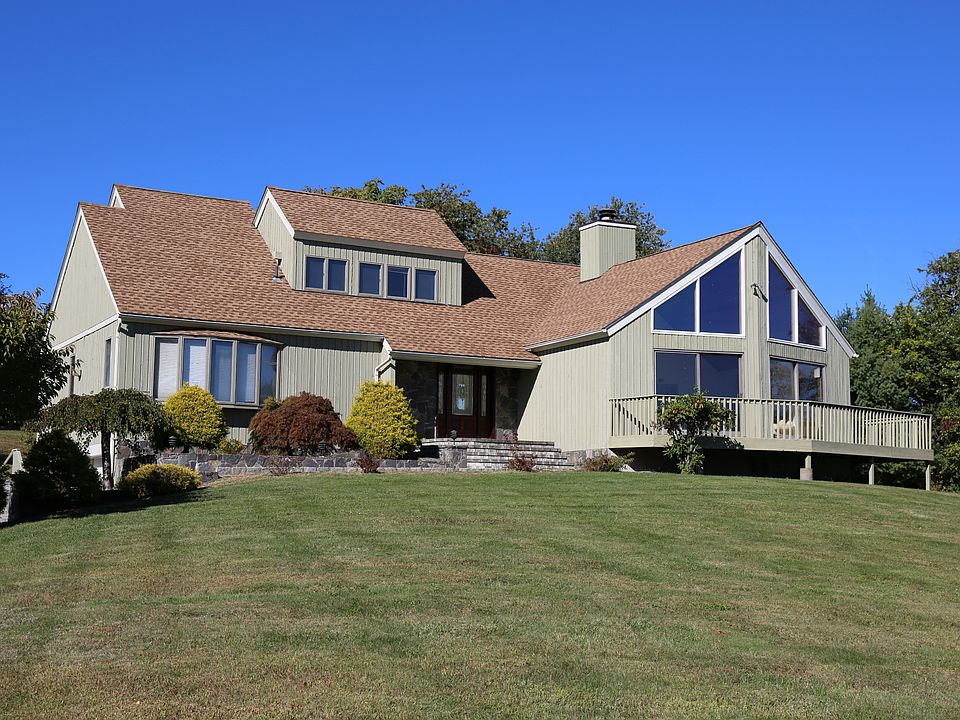 You'll enjoy distant majestic views from the spectacular, large, living room with vaulted ceilings and two sliders leading to the wrap around deck. Driving up the new driveway and walking in you'll be greeted by newer front door and a large marble tile entry. Family room has new triple pane windows and slider with a beautiful granite fireplace for winter warmth. Large dining room accommodates family and friends for those special occasions. A spacious working kitchen with center island and door leading to wrap around deck/backyard. The finished basement is 1140 square feet and is included in the total square footage of 4398. It includes a family room, den/office and provides additional space for entertaining family and friends. Enjoy the spacious garage for your stuff. Refinished floors upstairs. Wonderful property with room for a pool. This is a well maintained home located on a beautiful one acre setting. Excellent value. You are going to love it.