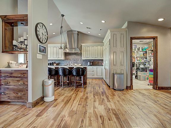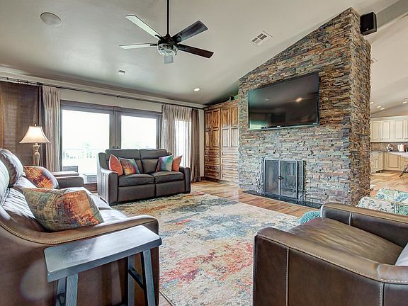 Experience elegance and comfort in this breathtaking home located west of Chisholm High School in the desirable Northwood Subdivision. Perfectly situated on 4.9 partially wooded acres (mol), this residence offers 5,968 sq. ft., per last appraisal, of beautifully designed living space with luxury features throughout. Step into the chef’s kitchen, complete with a full-sized Sub-Zero refrigerator, professional-grade gas range, soapstone countertops, and a massive island perfect for entertaining. Multiple living areas showcase three beautiful fireplaces, including a natural stone fireplace in the main living room and another in the spacious primary suite, which also boasts a private courtyard retreat, large walk-in closet, and a spa-like bathroom with walk-in shower and soaking tub. Hickory wood floors flow through the main level, and modern comfort is ensured with a new geothermal heating and cooling system installed in 2025, replacing the original. Experience the convenience of laundry rooms on each level. The fully finished walk-out lower level is an entertainer’s dream, featuring three bedrooms, 2.5 baths, a game room, safe room, kitchenette, and laundry area. This is where the third stone fireplace is located. Outdoors, enjoy the in-ground sprinkler system, mature trees, and serene privacy that only Northwood can offer. This exceptional property combines timeless craftsmanship with modern updates, making it the perfect retreat for family living and entertaining.