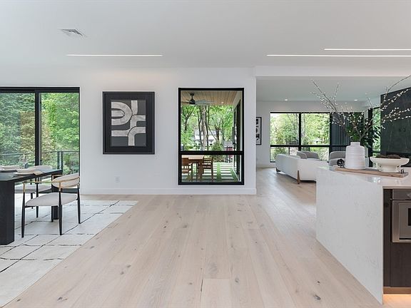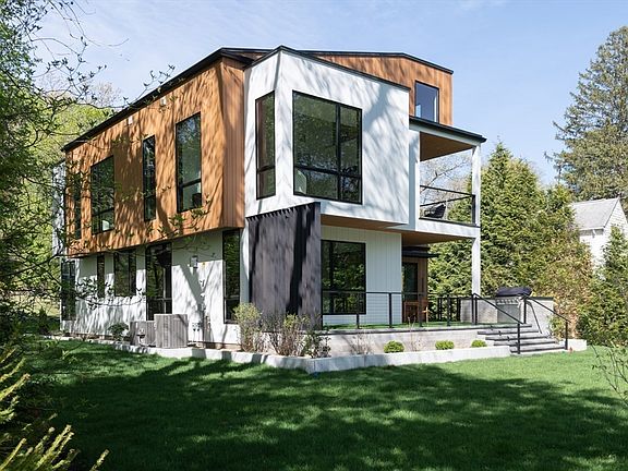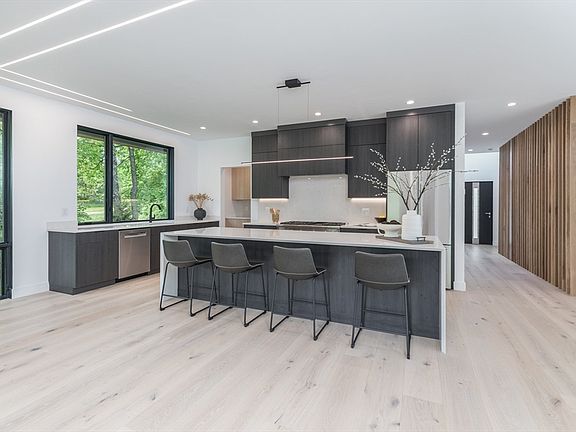 Sophisticated, sleek modern home. 2025 year built with one year builders warranty on cul-de-sac. Oversized floor-to-ceiling windows flood interiors with natural light. Open concept family and dining rooms flow with modern show-kitchen enhanced by light oak prep kitchen. Family room features statement gas fireplace and sliding door access to covered patio w/ outdoor kitchen accented by creative lighting. Staircase with white oak fins and oversized treads illuminated by novel wall lighting. 2nd floor landing features ample ceiling height with floating stairs with glass. Primary suite features, covered deck, chic bathroom w/ floor to ceiling quartz, soaking tub, and separate shower, generous walk-in closet with built-in organizational storage. 3 additional ensuite bedrooms with radiant-heated bathrooms, and large walk-in closets, office, laundry room with heated floors complete the 2nd floor. Finished Lower Level with large open area for recreation and exercise. Top Rated Weston Schools.