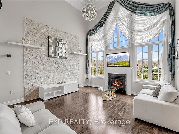 Call It Home! Ravine Lot Beauty! Welcome to this stunning home backing onto a peaceful ravine offering space, style, and comfort in one of the best locations. The kitchen is a chefs dream, with granite counters, custom cabinets, under-cabinet lighting, and built-in appliances. It opens to a large deck with gorgeous ravine views perfect for morning coffee or winding down in the evening. The family room features 18-ft ceilings, a beautiful stone accent wall, and a cozy gas fireplace. You'll also find a formal dining room and a main-floor office or guest room ideal for working from home or hosting guests. Upstairs, the primary bedroom includes a Juliet balcony, custom built-in closet organizers, and a spa-like ensuite. One bedroom has its own private bath, while the other two share a semi-ensuite. All bedrooms have excellent closet space with organizers. The finished walk-out basement offers 9-ft ceilings, a stylish bar with sink, full bathroom, large rec area, and a walkout to a backyard with a patio, firepit, and hot tub perfect for entertaining. Extras: include professional landscaping, custom interlock front and back, and top-ranked schools nearby. Just minutes to parks, shops, restaurants, GO Station, Hwy 400/407, and Mackenzie Health. A rare find in a top location!