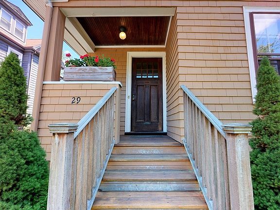 This custom Gambrel Colonial is situated on a lovely tree-lined side street in one of Belmont's most desirable neighborhoods...steps to Cushing Square Village with a variety of eateries, specialty shops, and Harvard Sq bus stop. Main level features an entry foyer with staircase to 2nd floor, fireplaced living room, formal dining room with built-in hutch, older kitchen with large pantry and small office area, spacious family room or 1st bedroom with full bath and enclosed rear porch. Second floor has 3 bedrooms and full family bath. Features include hardwood floors, wood moldings, French doors, built-ins, newer Navien heating/hot water system, 3 zone heat, 200 amp electric, and attic and basement storage. There is a one car garage with a shared driveway, plus private secluded garden with natural foot paths, two species of dogwoods, mature perennials and lush ground cover. Needs updates....a gem of a home awaiting your personal touch!