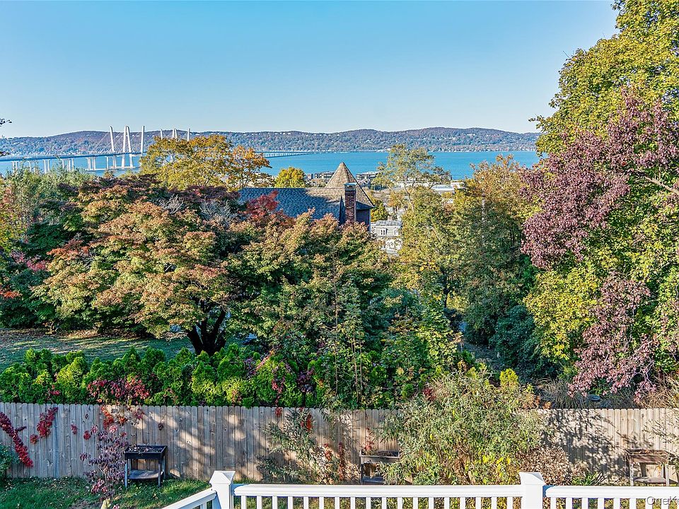 It's all about the location and year-round panoramic VIEWS of the Hudson River and Palisades! The last house on a quiet, dead-end street, and less than a half mile to bustling Main Street, you will enjoy the best of both worlds — a true walk-to-all lifestyle yet tucked away on a private and peaceful lot with the perfect setting. This Two-family home lives and feels like a Single-family, but with the benefit of a bonus apartment. The primary residence is two levels and has a spacious 3-bedroom / 2-bath / 1,629 SqFt footprint. The main level features a primary en-suite bedroom, and an open-concept kitchen/living/dining area with sliding glass doors to an expansive deck — perfect for al fresco dining and entertaining while taking in the stunning Western sunsets. The lower-level, with wet bar, offers a flex room perfect for a home office, den, movie-night, more -- from this level, there are entrances to both the attached garage and fenced-in backyard, which can work well for a playground, pets, gardening, outdoor activities. The legal 1-bedroom / 1-bath / 625 SqFt no step single-level apartment, with private rear entrance, provides flexibility for extended family, guests, or rental income to help offset taxes or living expenses. From this ideal location, you are moments away from Tarrytown's vibrant Main Street, theaters, restaurants, shops, OCA Trail, marinas, and the Scenic Hudson RiverWalk Park and waterfront which buzzes with activity, including Summer Jazz concerts and more! Less than a mile to the Metro-North train station for an easy and scenic 36-minute express commute from NYC.