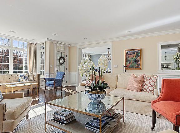 Exceptional, custom renovation/rebuilt home in tranquil setting on inner Woodley Road. This gracious home has been completely renovated and offers an ideal floor plan for today's lifestyle. 1st fl w/ large LR with fireplace and elegant dining room (both overlooking pool, patio and deep property), gorgeous, well-designed bar which opens to dining and living rooms (perfect for entertaining), exquisite kitchen with sunny southern breakfast area overlooking patio and pool and opening to adjacent FR with custom built-ins and fireplace. 1st fl. also includes a private bedroom/den with full bath. Also on first is fabulous mudroom off large attached garage, two powder rooms and laundry. 2nd fl includes luxurious master retreat suite with private office or exercise room, luxurious bath, his and her walk in closets and dressing area plus 4 add'l BRs, 3 add'l BTHs - all new and beautifully renovated. Lower level is spacious and tall - offering fantastic extra space for down the road. Gorgeous property w/ pool offers fun for all in a private setting - a tranquil, idyllic oasis in the heart of Woodley Road.