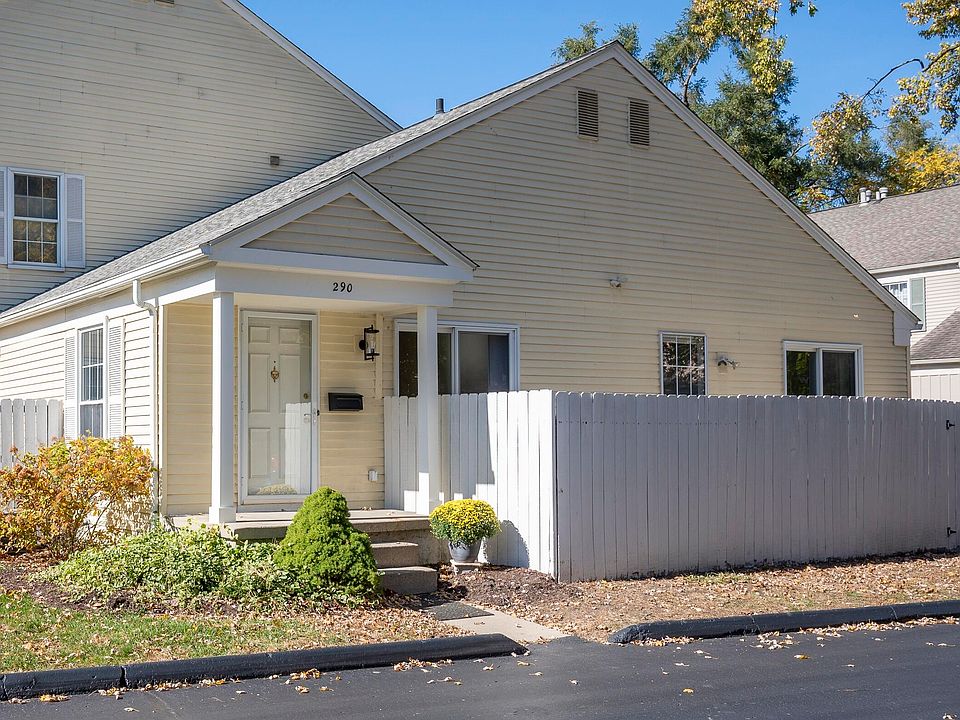 Just 2 blocks from Downtown Rochester. Great ranch end unit condo - living made easy! Two bedrooms with large walk-in closets and hardwood floors throughout. Freshly painted with updated bathroom and kitchen. Kitchen offers tons of counter space with premium cabinetry and lots of storage. All appliances are included, including 1st floor stackable washer and dryer. Also newer windows, interior six-panel doors, and light fixtures. Newer door walls bring in lots of natural light and lead to a large patio that is completely privacy-fenced. This patio is perfect for outside living space to entertain family and friends - a place to call your own. The association takes care of lawn/snow and water. Close to the trails and parks. Come take a look today and make this your home