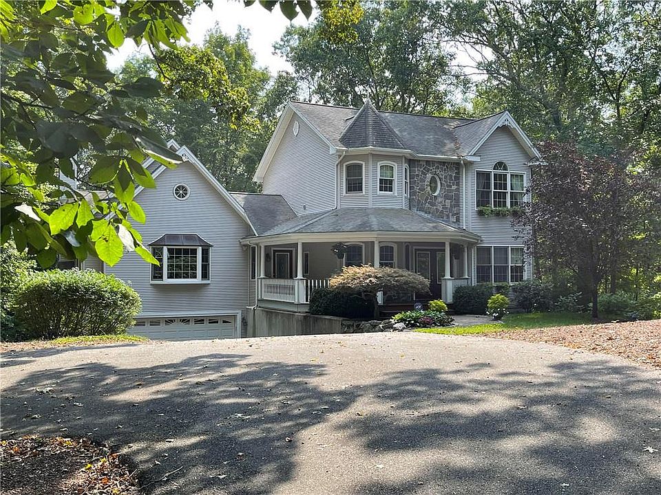 Custom Victorian Colonial on private professionally manicured lot, Kirkbrae area of Lincoln. Many bells and whistles including Mahogany gazebo style front porch, mahogany decks with vinyl railings off walk out lower and main level.Full Bath with marble flooring and Bedroom on first level. Office with build in desk and shelving. Beautiful custom cherry cabinetry and granite chefs kitchen. Custom archways, beautiful dining room with built in granite bar. Plenty of light with the custom oversized arch windows in dining room and family room. Family room has a beautiful laminate wood brazilian cherry color flooring with a floor to ceiling granite wood burning fireplace and cathedral ceilings. Second level consists of three beds. Two sharing a full bath through pocket doors. Master has a beautiful built-in custom closet space and ensuite full bath with jacuzzi, shower, marble tile. Lower level is finished with separate heating zone, laminate wood flooring and walk out to gorgeous backyard. Custom hardscape and landscape in the rear including a large patio and sprinklers. This is a well built home ready for your family!!