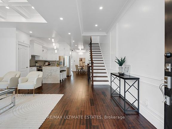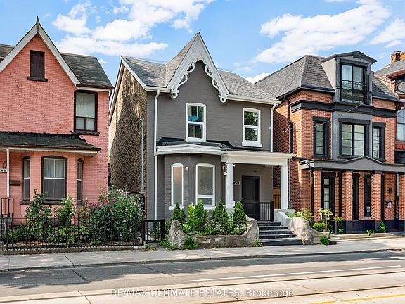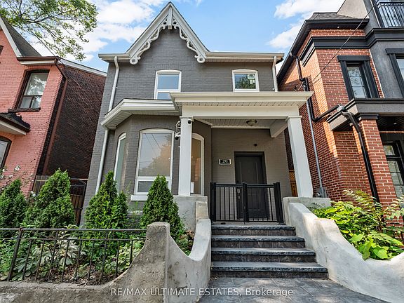Located in the heart of downtown Toronto, this luxury estate is perfectly positioned across from Alexandra Park and steps from the University of Toronto, OCAD University, Toronto Western Hospital and the Financial District, in the Trinity Bellwood neighbourhood. Wake up every morning to the scenery of a beautiful park across the street, with a view of the CN Tower peaking above the trees. Offering unmatched access to downtown living with privacy and exclusivity, this home is a true masterpiece. COMPLETELY UPDATED STRUCTURE, PLUMBING, ELECTRICAL AND HVAC TO APPROVED BUILDING CODE STANDARDS, this house is meticulously renovated (over $500K) with no expense spared. The open-concept main floor features crystal chandeliers, soaring coffered ceilings, and gleaming hardwood floors. The chef's kitchen, equipped with premium smart appliances, features full height custom cabinetry, luxurious Caesarstone granite countertops, and a spacious center island with a dramatic waterfall edge and bistro-style seating. Upstairs, the primary suite is a serene sanctuary with a custom walk-in closet, and a personal luxurious oasis spa retreat main bathroom, complete with rainfall shower head, large soaker tub, heated floors, and towel warmer. The finished basement offers flexible space, including a private in-law suite with its own entrance, ideal for multigenerational living or rental income. Outside, enjoy a private garden oasis and a two-car garage with app-controlled automatic doors and EV charger, permitted for future conversion into a coach house. This home also offers top-of-the-line security, with 24/7 camera coverage, reinforced steel doors, and state-of-the-art features for peace of mind. A rare opportunity to own a refined and luxurious home in one of Toronto's most desired neighbourhoods.