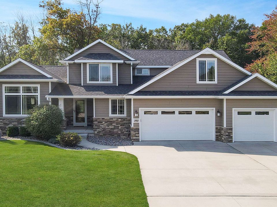 Welcome to this stunning 1.5 story home nestled on a sprawling 1.14+/- acre lot. As you step inside you are greeted by a living rm featuring soaring ceilings and a cozy gas fireplace. Office space offers the perfect nook. The home flows effortlessly into the breakfast area and spacious kitchen which boasts granite countertops, center island and a complete appliance package. Family rm is designed to please offering picturesque views of your private backyard. The primary bedrm, located on the main flr, complete with a walk-in closet and a private bathrm featuring a tile walk-in shower & whirlpool tub. 1st Fl Laundry features locker area. Upstairs you will find 4 bedrms & 2 full baths providing ample space for entertaining. LL features a rec room, theater rm, wet bar area.