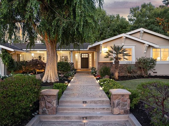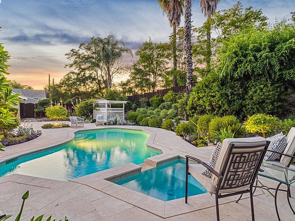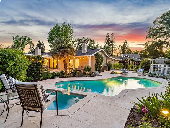 Welcome to this charming, craftsman style single-story gem in prestigious Roundhill Country Club. Oozing with character and beautiful upgrades, this 4-bedroom, 2.5-bathroom home offers 2,593 sq ft of comfortable living on a private, flat .36-acre lot. The inviting covered front porch leads to a light-filled great room with peaked ceilings, seamlessly connected to a stylish remodeled kitchen featuring a large island w/granite countertops and built in banquette seating—perfect for gatherings. Enjoy cozy evenings in the family room with fireplace and French doors opening to your private backyard oasis. The luxurious primary suite features built-ins, backyard access, and a spa-like bath with soaking tub, walk-in shower, and dual vanities. Thoughtful upgrades include hardwood floors, crown molding, new paint inside and out, and modern new light fixtures. Relax or entertain in your private yard with a sparkling pool with waterfall, spa, lush gardens, Aegean tumbled marble-floored covered patio, fruit trees and expansive lawn. Just minutes to Roundhill’s clubhouse, courts, trails, and top-rated schools. In close proximity to hiking and biking and top-rated schools. Don’t miss your opportunity to own a slice of heaven in Alamo.