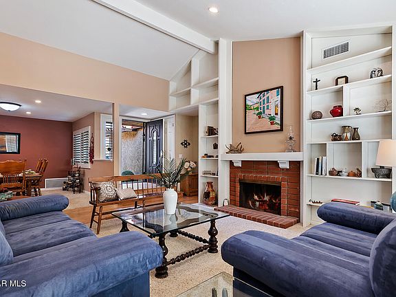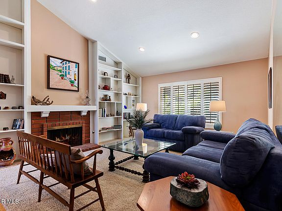 Nestled in an ideal location of Thousand Oaks, this impressive Lynn Oaks SINGLE-STORY residence boasts four bedrooms, two baths, 1,872 square feet, a lot size of just over 12,800 square feet, and a direct-access two-car garage. The home has been meticulously maintained. Featuring a lovely curb appeal and low-maintenance landscaping in front and back. Beautifully detailed front door, large formal living room with decorative fireplace and mantle, custom shelving, and vaulted ceiling. Separate formal dining room with recessed lighting and solar tube. The family room features a vaulted ceiling and two sliders leading to the back patio with a pergola and is perfect for enjoying your morning coffee or a pleasant evening at home with friends and family. The kitchen features granite countertops with an oversized breakfast bar and pendant lighting, ample cabinetry storage, a stainless refrigerator, a stainless Bosch® dishwasher, and stainless gas range/oven. The walk-in pantry is located in the separate interior laundry room with upper shelving above the washer and dryer space. The primary bedroom includes a spacious walk-in closet and a slider leading to the side yard. The primary bath includes dual sinks at the vanity. Both bathrooms have been tastefully remodeled. Additional interior features include a solar tube in the hall, custom plantation shutters at most windows, mirrored closet doors, central A/C, and ceiling fans in the family room, primary bedroom, and bedrooms 3 and 4. Zoned for RV access/storage or possible ADU. The wonderful location is right across the street from Lynn Oaks Park which includes a volleyball court, basketball court, track, and tot lot. Just another few steps and you can hike or mountain bike the local trails.
